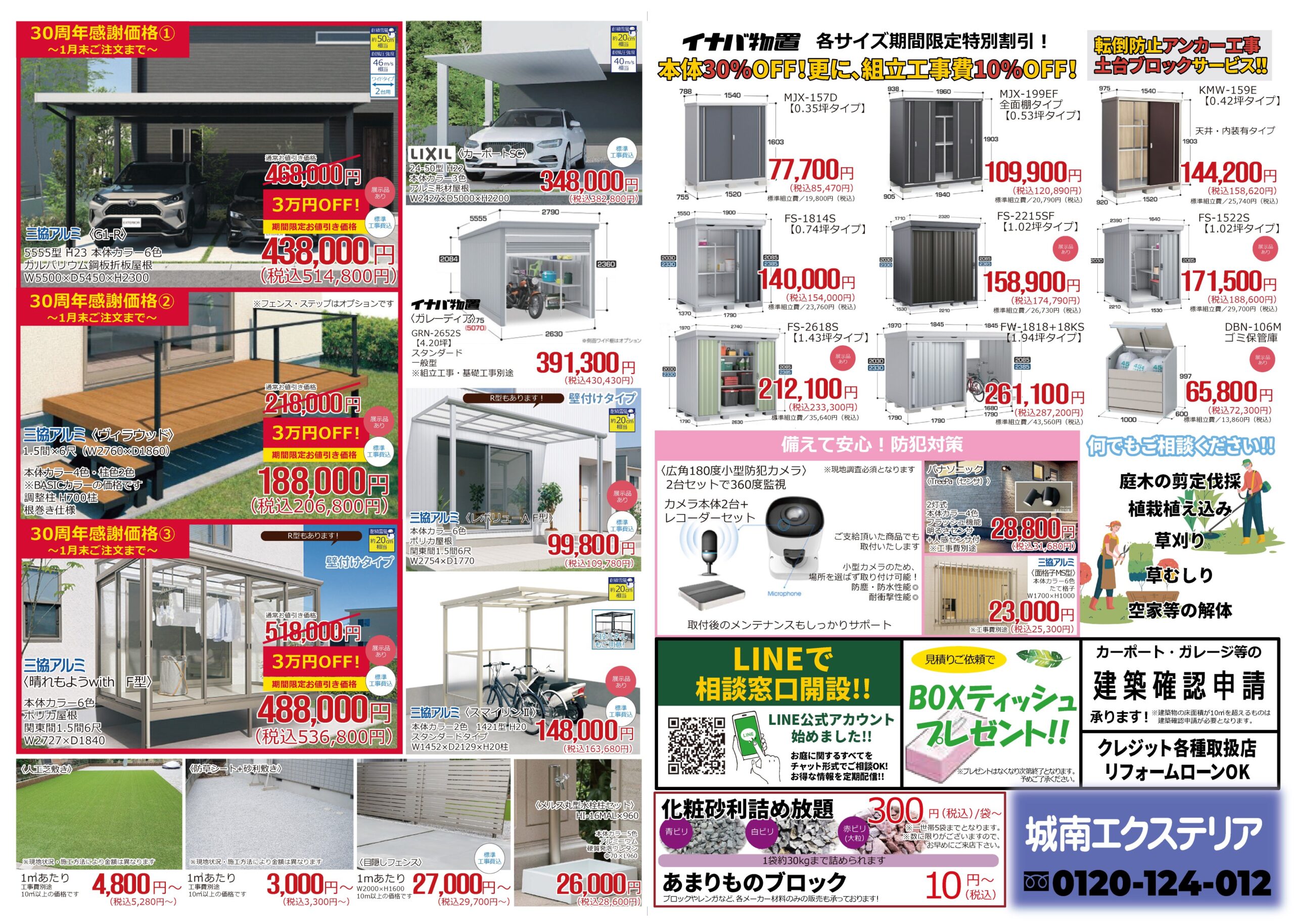 NEWS 2026.1.16 チラシ更新 WEBチラシ更新《`26.1.16》 新しくチラシの更新です デッキ、サンルーム、テラス他、人気のカーポートなどを特別価格にてご提供!お見逃しなく!電話はこちら
