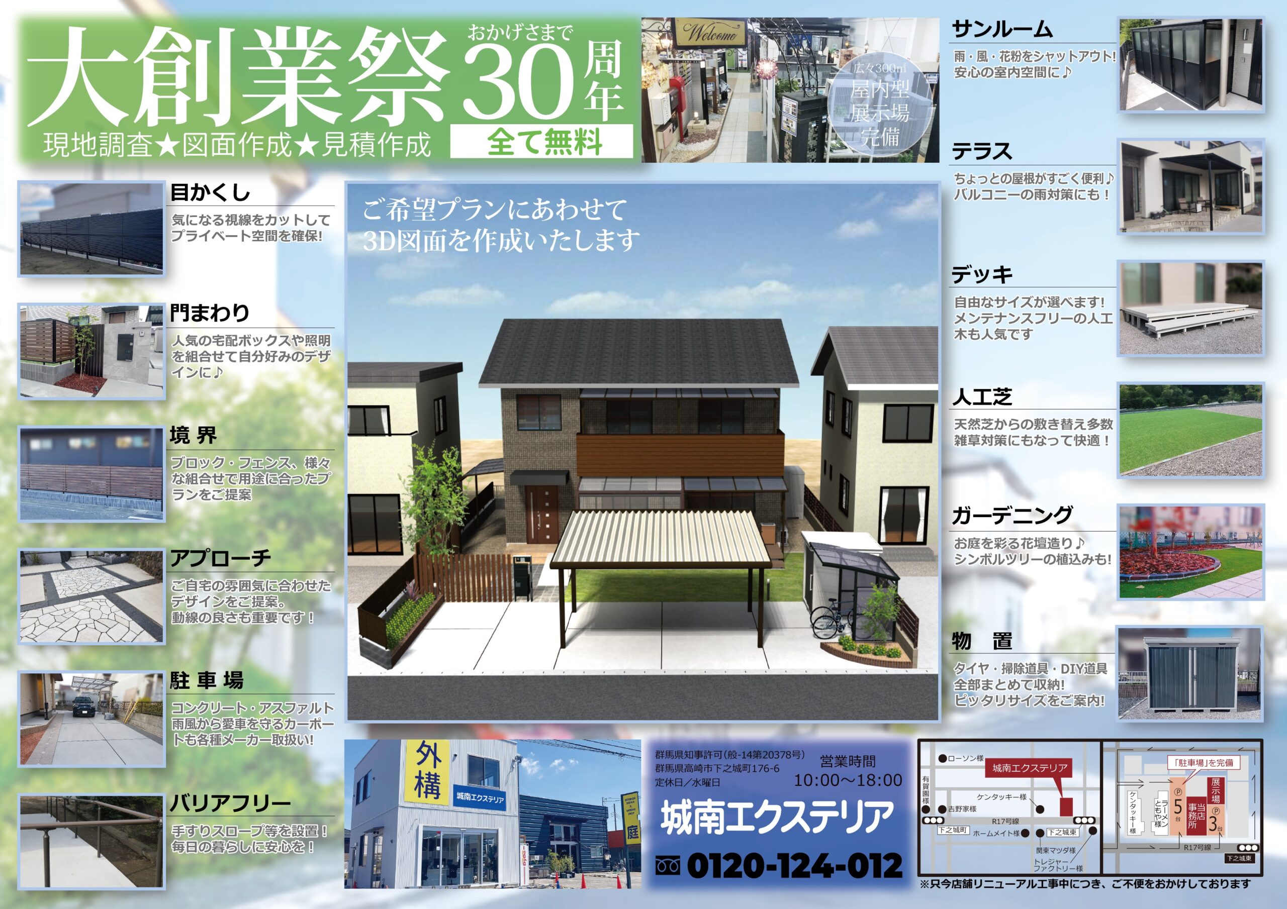 NEWS 2025.11.21 チラシ更新 WEBチラシ更新《`25.11.21》 新しくチラシの更新です デッキ、サンルーム、テラス他、人気のカーポートなどを特別価格にてご提供!お見逃しなく!電話はこちら